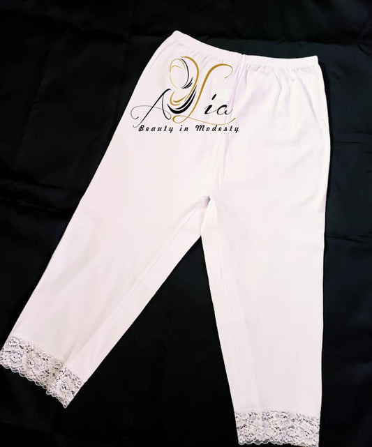 M - L - XL Women White Cotton Capri Leggings