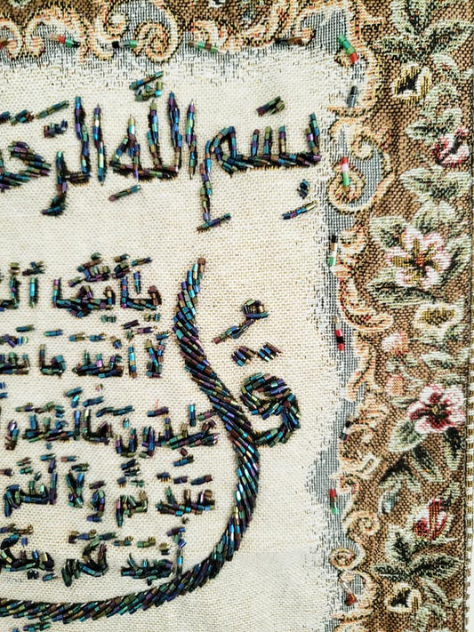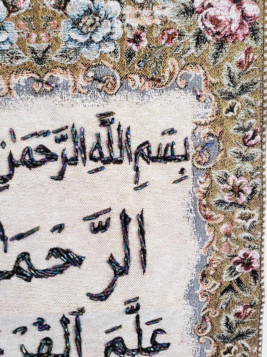 "Bismillah & Ayat Ul-Kursi" Luxurious Ajami Tapestry, 4 Rings / 5 Rings