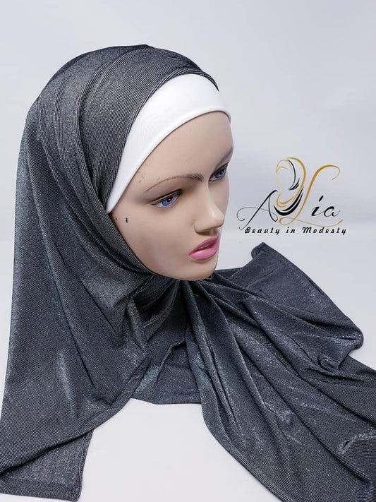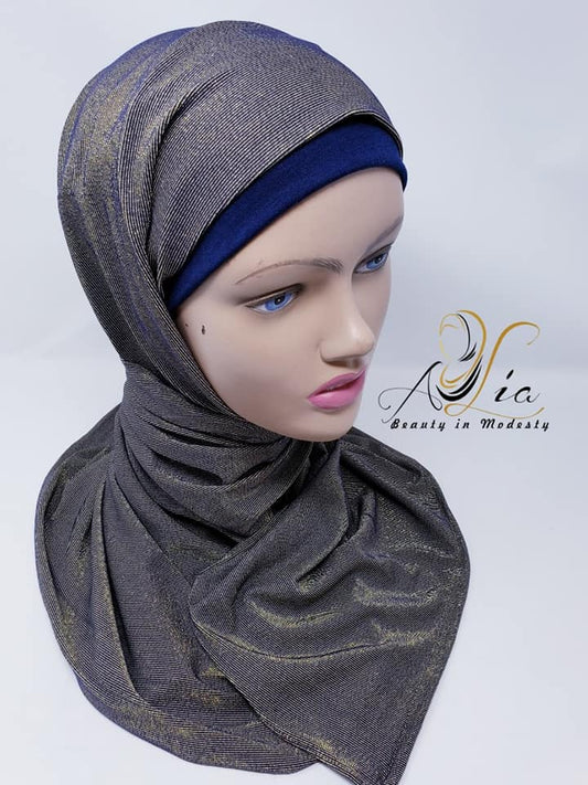 Sparkly Navy Blue & Golden Jersey Shawl JER-02