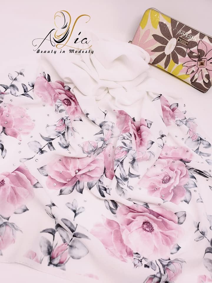 Floral chiffon shawl, soft fabric. It is designed with shiny diamond rhinstones to show the beauty & outstanding elegance look of this fabulous shawl. Good for for everyday use and for special occasions.