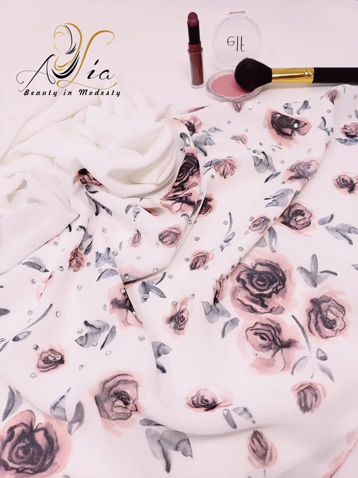 Floral chiffon shawl, soft fabric. It is designed with shiny diamond rhinstones to show the beauty & outstanding elegance look of this fabulous shawl. Good for for everyday use and for special occasions.
