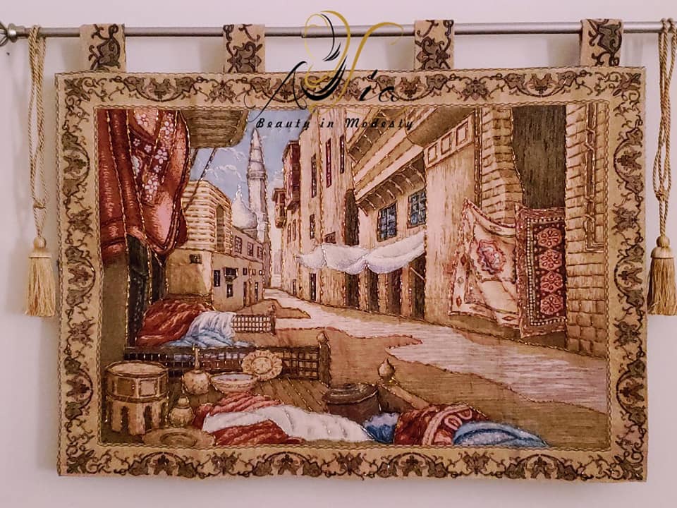 لوحة غوبلان تمثل الفن المعماري التراثي الشرقي اللوحة مشكوك بأحجار السيلان اللامعة لتزيد من جمالها
