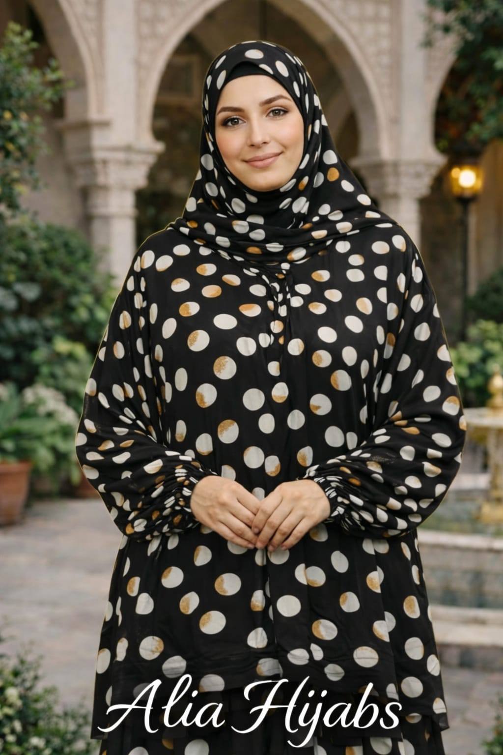 استمتعي بالراحة والأناقة مع طقم الصلاة النسائي المصنوع من قماش ليكرا جرسي عالي الجودة. يتميز بالقماش البارد والخفيف الذي يسمح بتهوية ممتازة ويوفر راحة تامة أثناء الارتداء.
