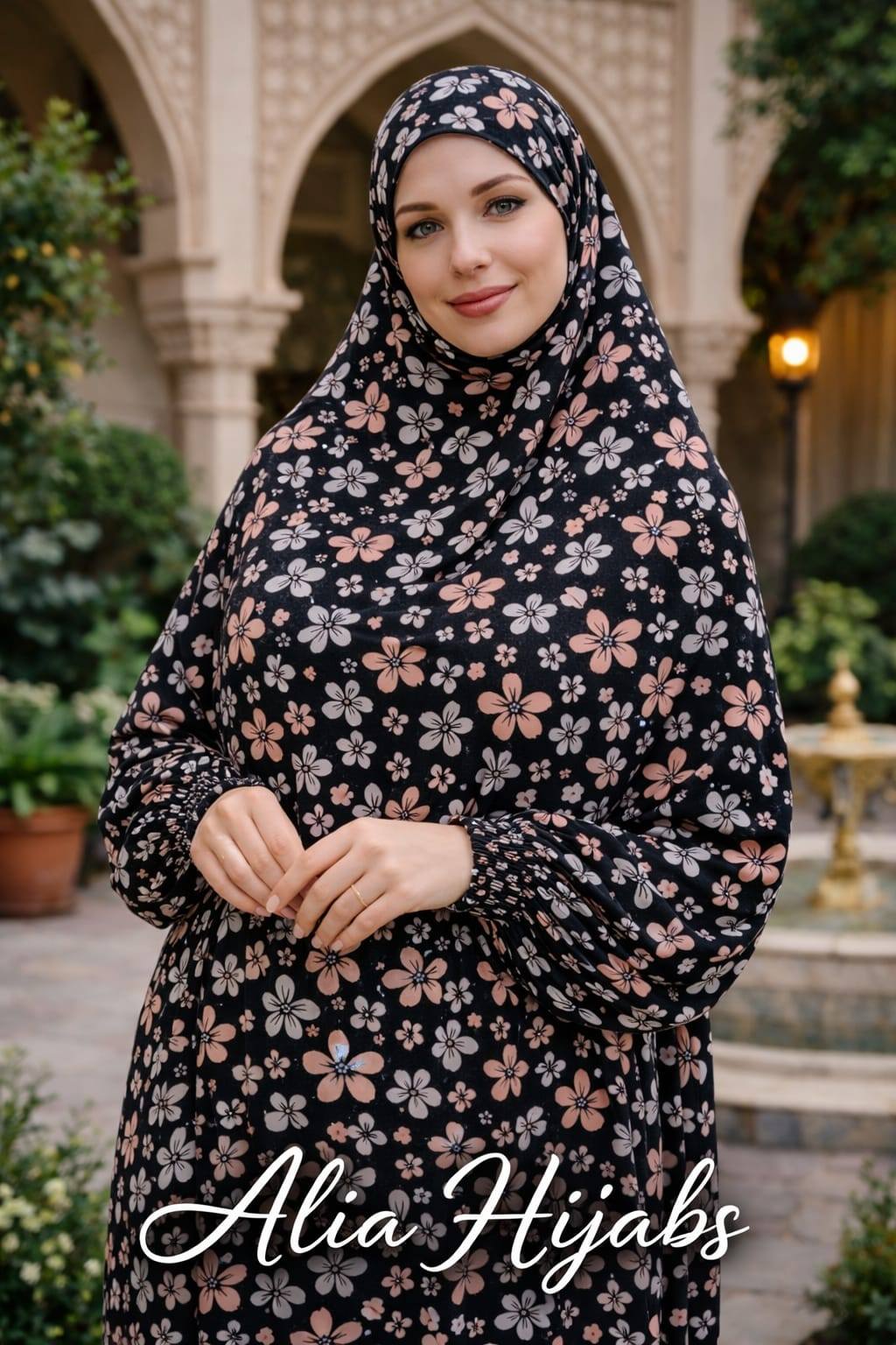 استمتعي بالراحة والأناقة مع طقم الصلاة النسائي المصنوع من قماش ليكرا جرسي عالي الجودة. يتميز بالقماش البارد والخفيف الذي يسمح بتهوية ممتازة ويوفر راحة تامة أثناء الارتداء.