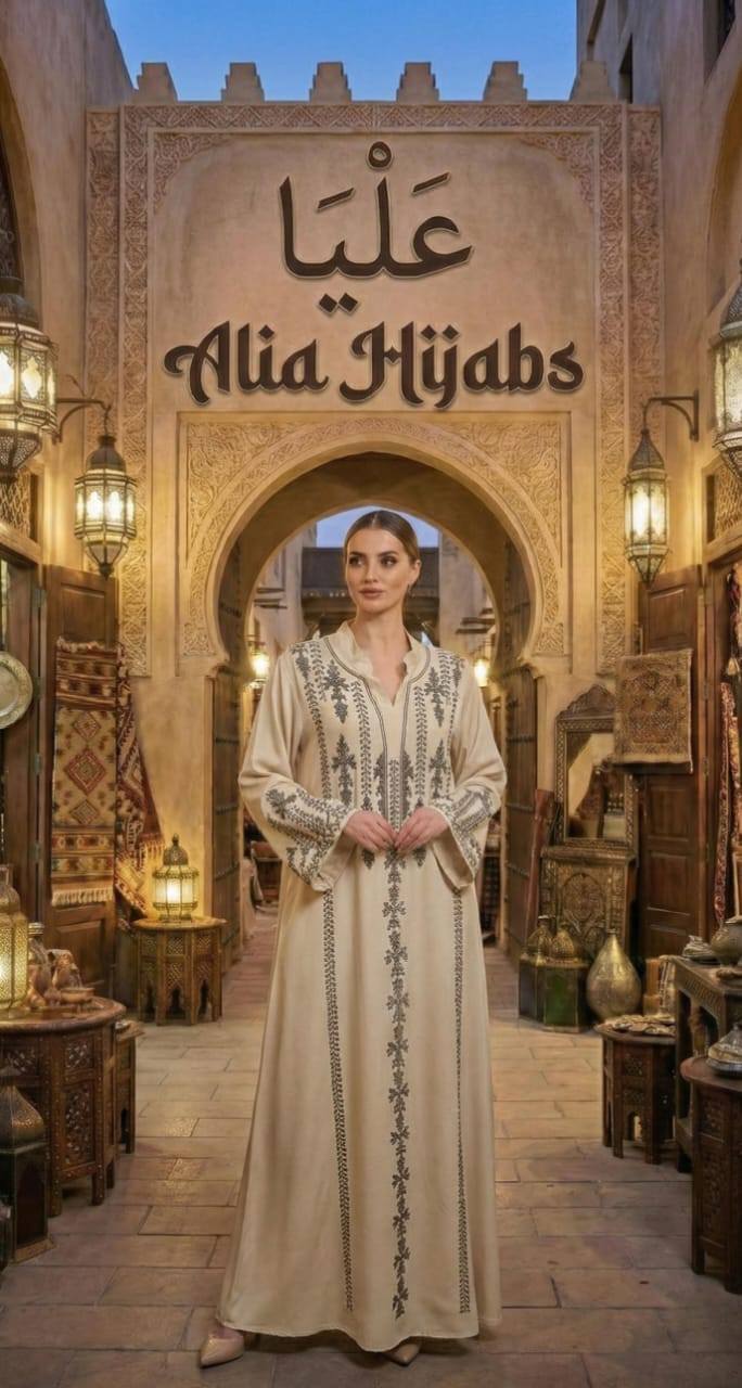 Pearl Satin & Rhinestones Gabaliya/Dishdasha