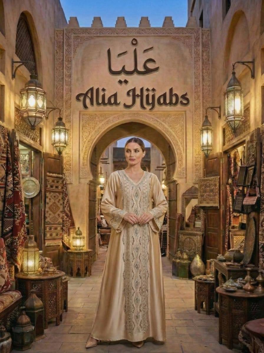 Peach Satin & Rhinestones Gabaliya/Dishdasha